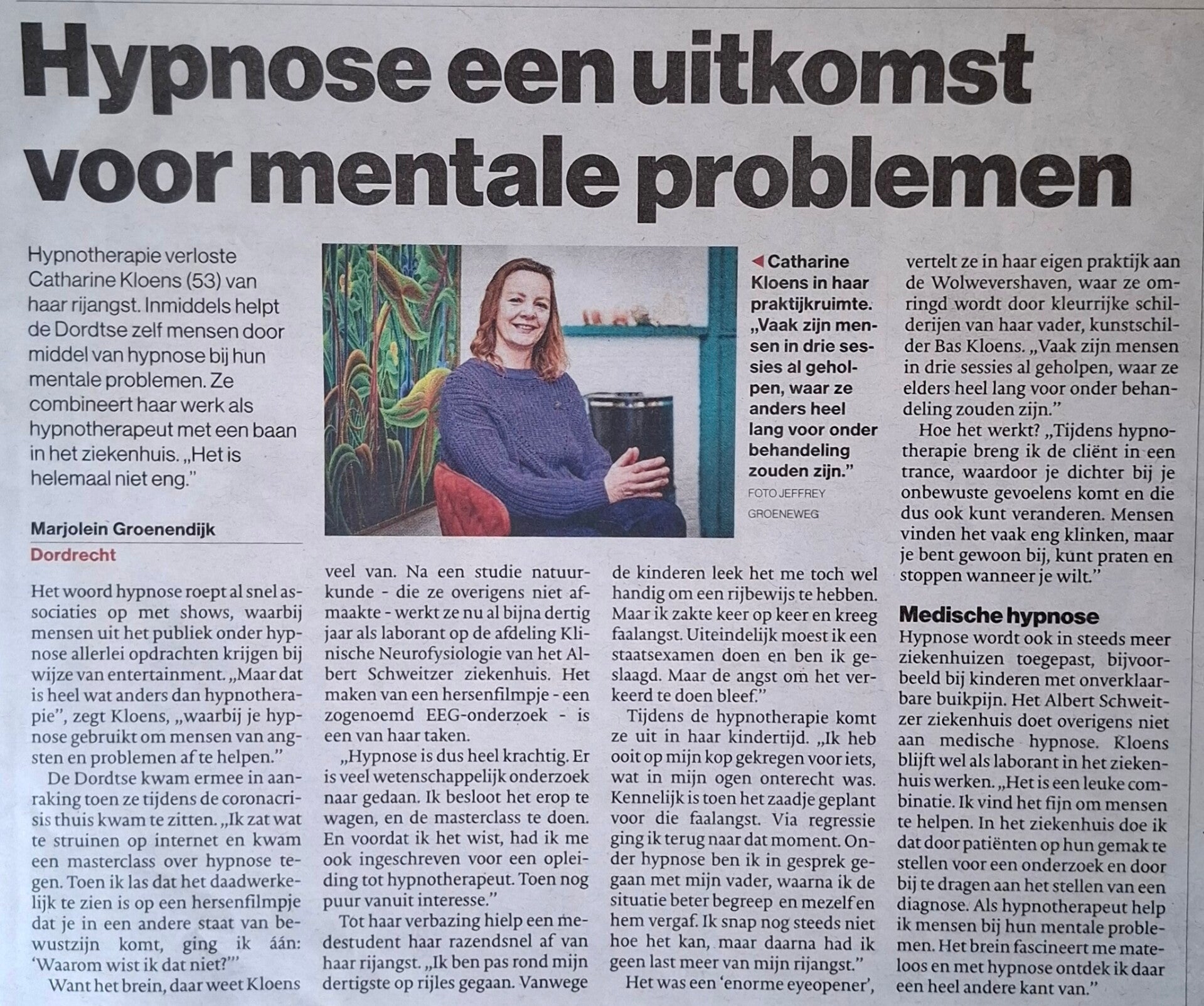 Op 19-01-2024 stond ik in het AD de Dordtenaar met een artikel over mijn praktijk: